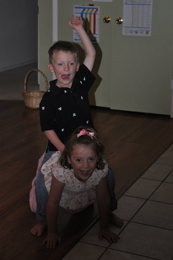 These two were having so much fun together with Sarah giving him rides everywhere. At one instant, she looked up and said to me, "Mom, we are being so nice, don't you want to take a picture?" Why yes, yes I do!!!